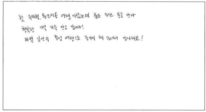 제목 | 2022년10월08일 출발 퀘벡+몽트랑블랑 자필후기(3-3호차) | ||