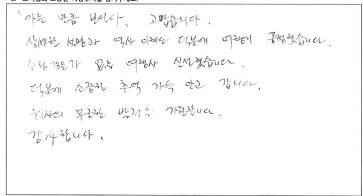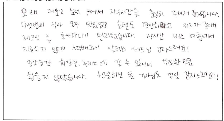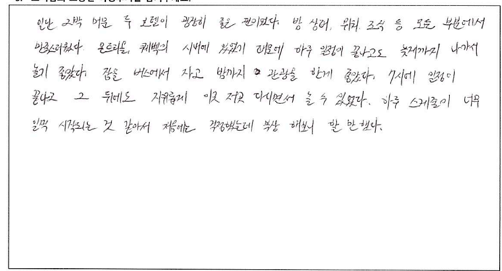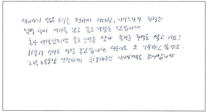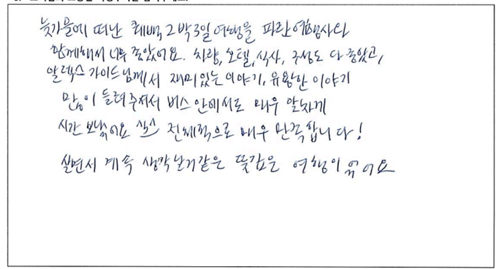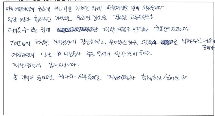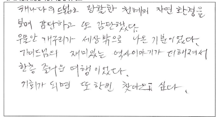 제목 | 2022년10월25일 출발 퀘벡 자필후기 | ||