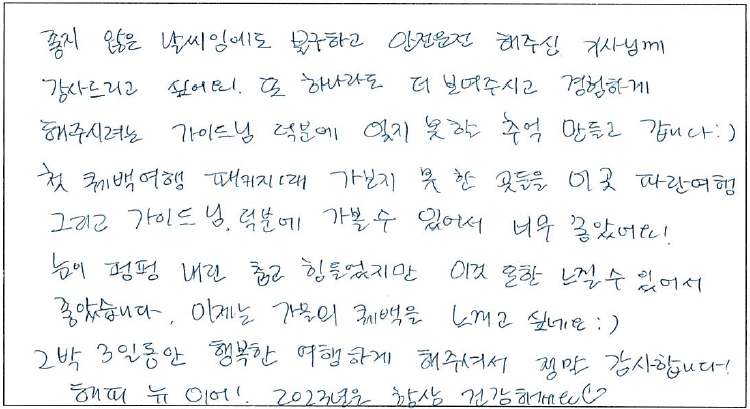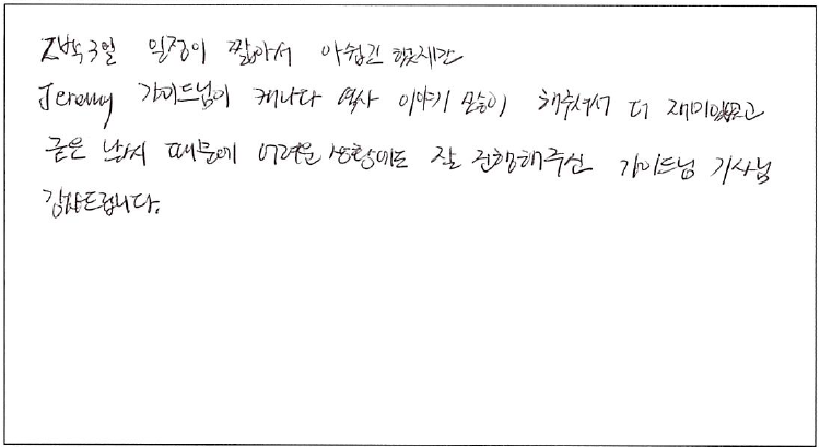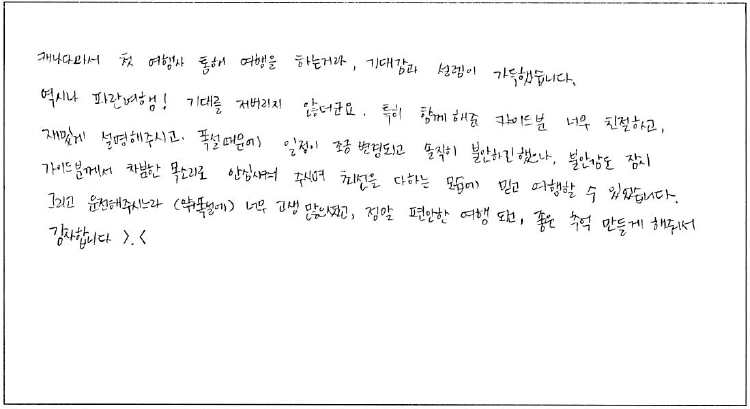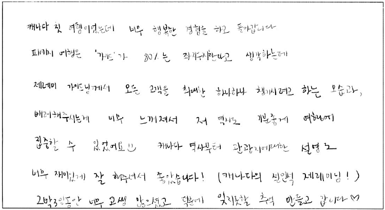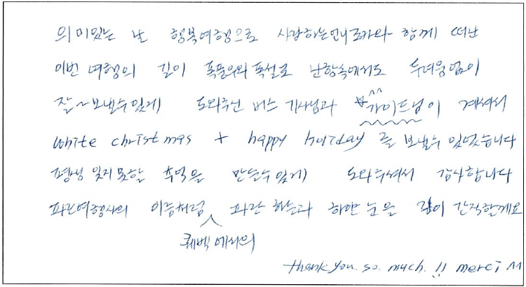 제목 | 2022년 12월 24일 출발 퀘벡 자필후기 | ||