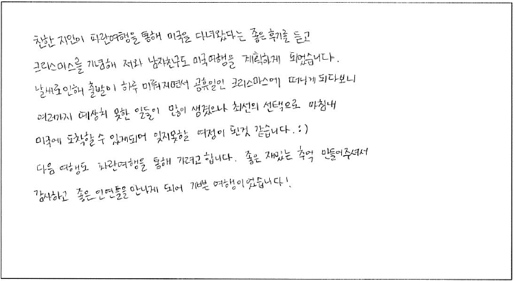 제목 | 2022년 12월 25일 출발 뉴욕만4일 자필후기 | ||