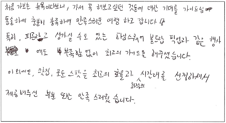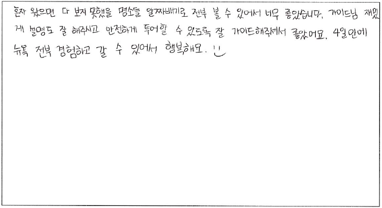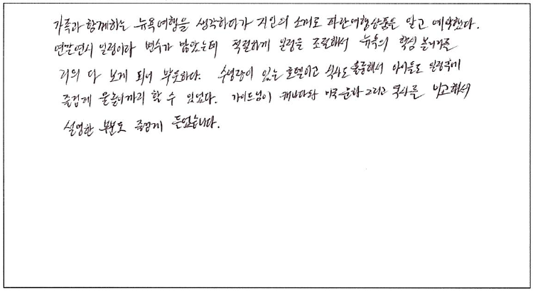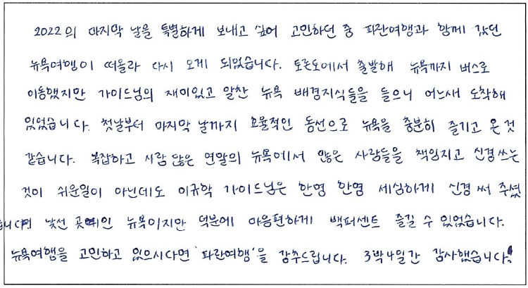 제목 | 2022년 12월 30일 출발 뉴욕만4일 자필후기 | ||