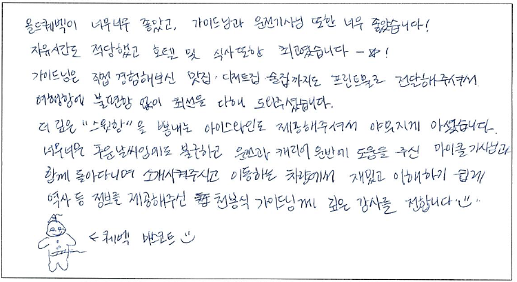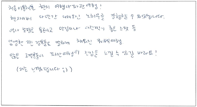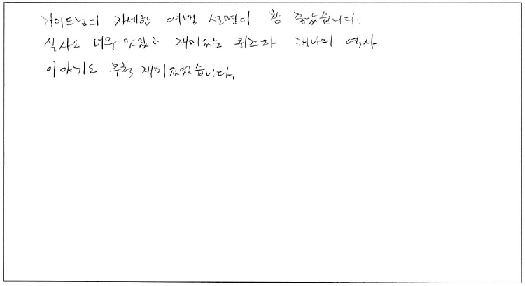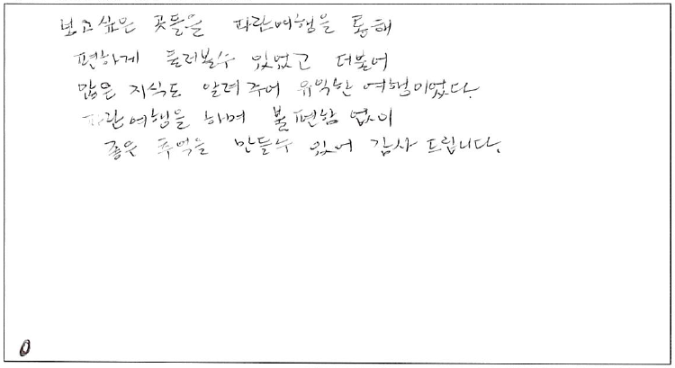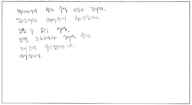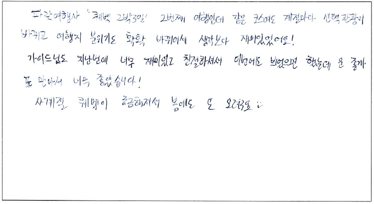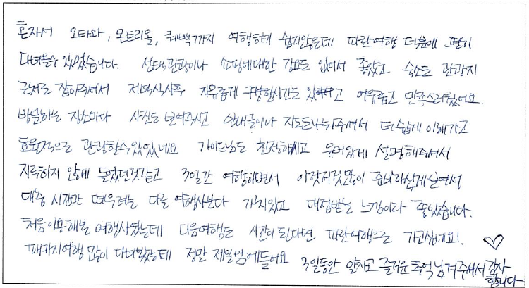 제목 | 2023년 02월 03일 출발 퀘벡 자필 후기(2-1호차) | ||