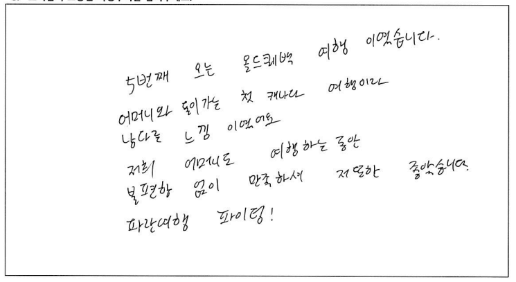제목 | 2023년 02월 18일 출발 퀘벡 자필후기 | ||