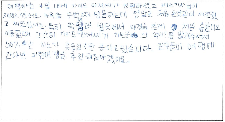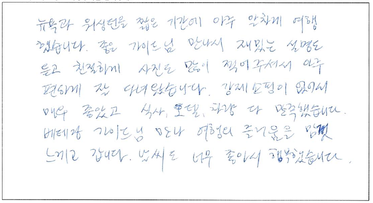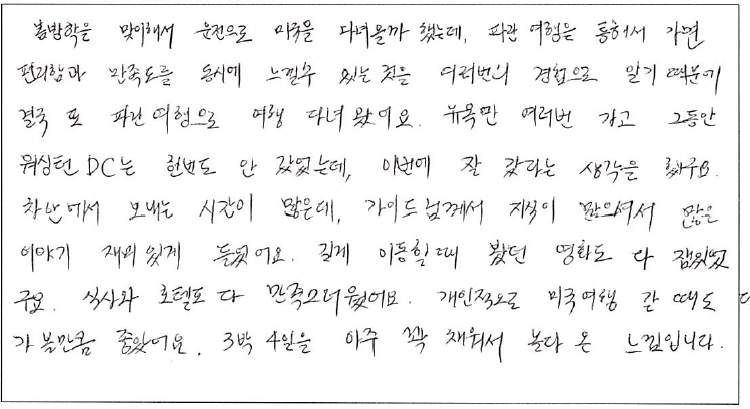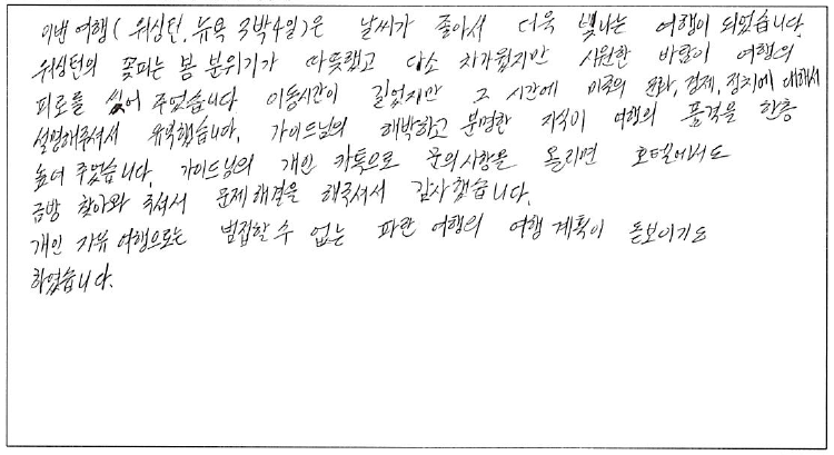 제목 | 2023년 03월 14일 출발 뉴욕+워싱턴 자필후기 | ||