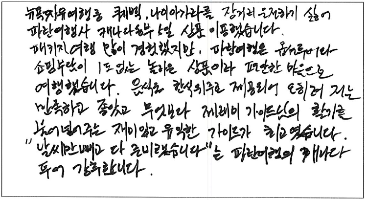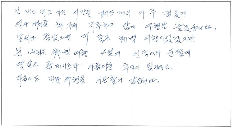 제목 | 2023년 03월 31일 출발 퀘벡 자필후기 | ||