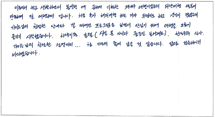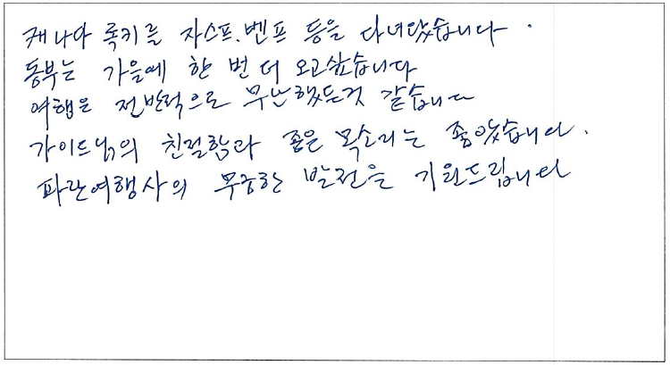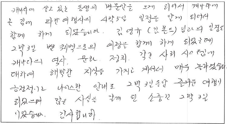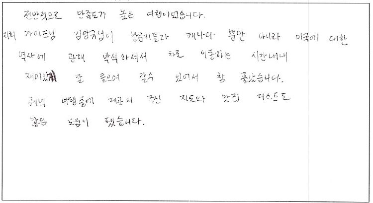 제목 | 2023년 04월 11일 출발 퀘벡 자필후기 | ||