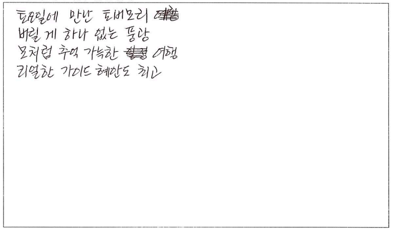 제목 | 2023년05월06일 출발 토버모리1일 자필후기 | ||