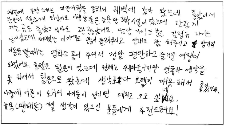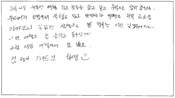 제목 | 2023년05월19일 출발 뉴욕만4일 자필후기 | ||