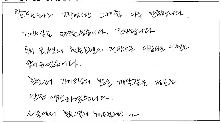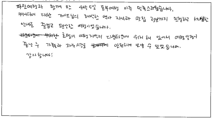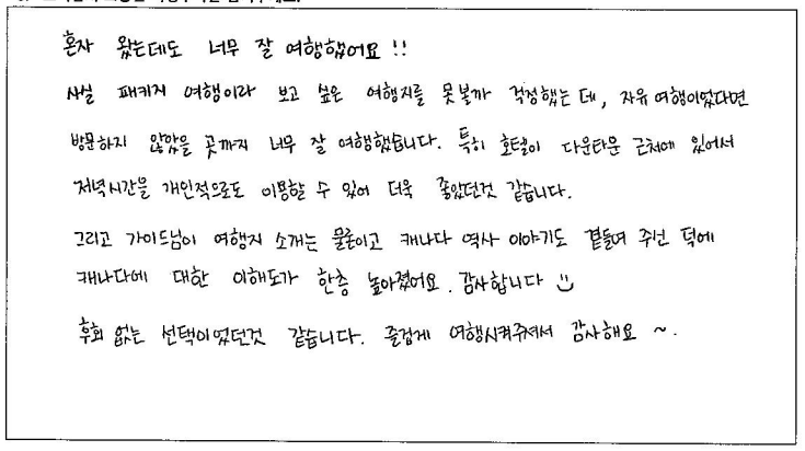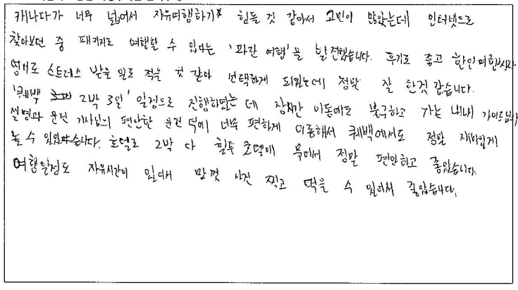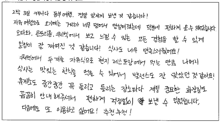 제목 | 2023년05월19일 출발 퀘벡 자필후기 | ||
