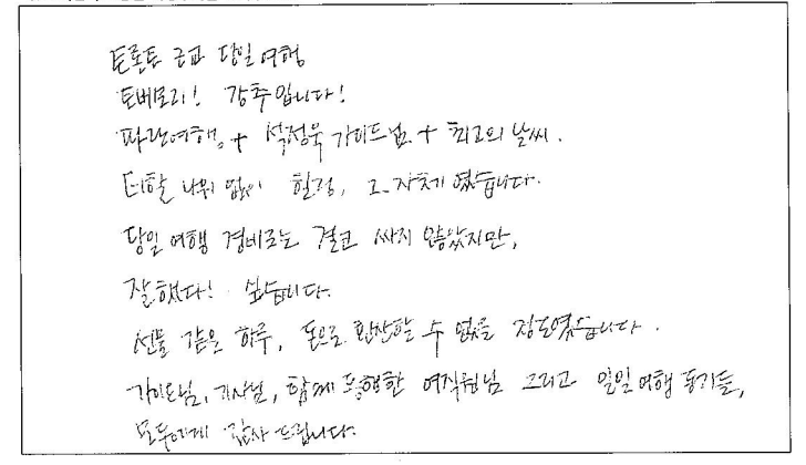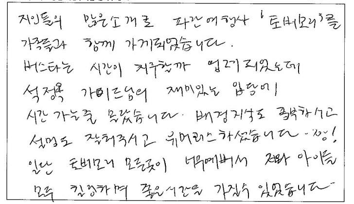 제목 | 2023년5월27일 출발 토버모리1일 자필후기 | ||