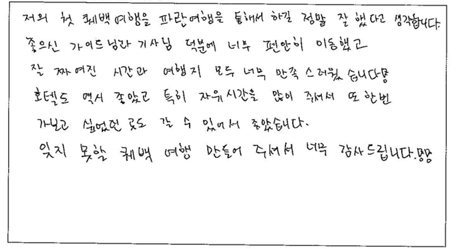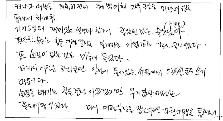 제목 | 2023년05월 30일 출발 퀘벡 자필후기 | ||