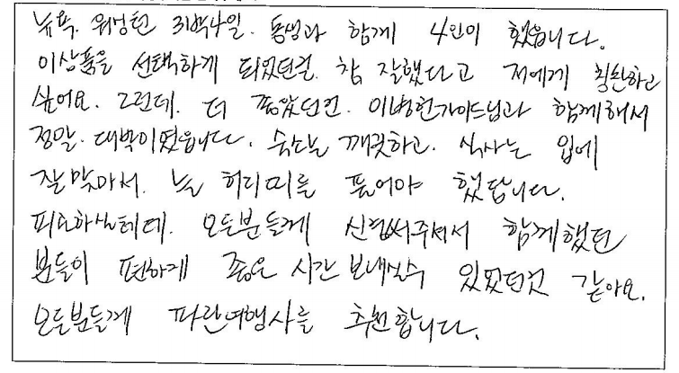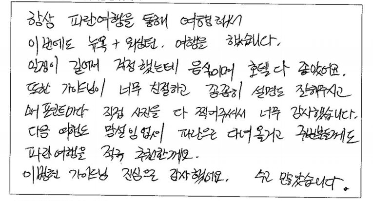 제목 | 2023년06월01일 출발 뉴욕+워싱턴3박4일 자필후기 | ||