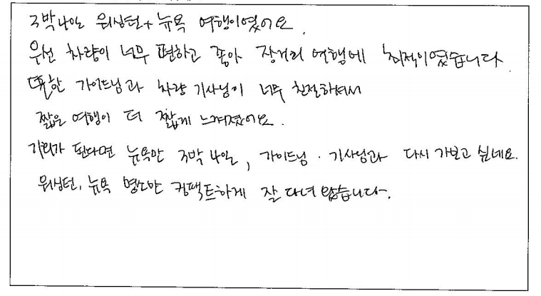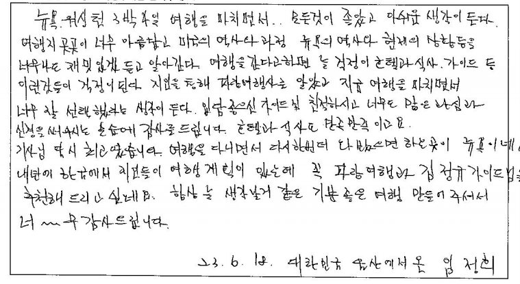제목 | 2023년6월15일 출발 뉴욕+워싱턴3박4일 자필후기 | ||