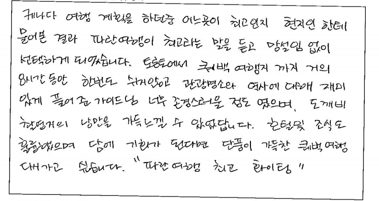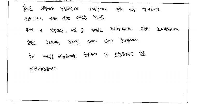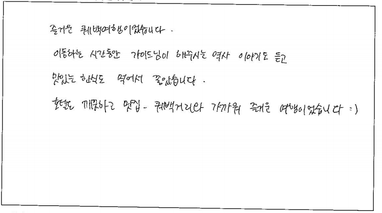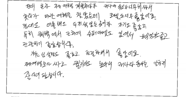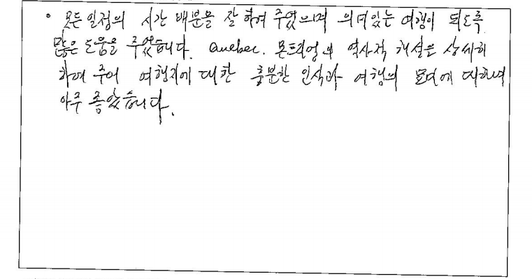 제목 | 2023년06월16일 출발 퀘벡 자필후기 | ||