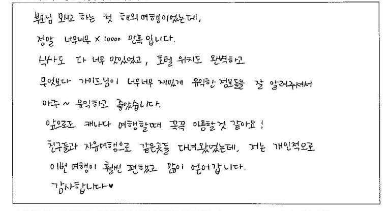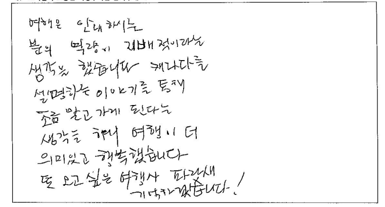 제목 | 2023년06월19일 출발 퀘벡 자필후기 | ||