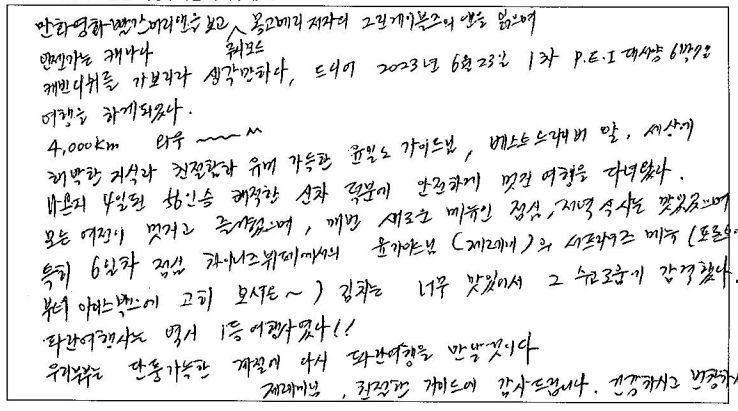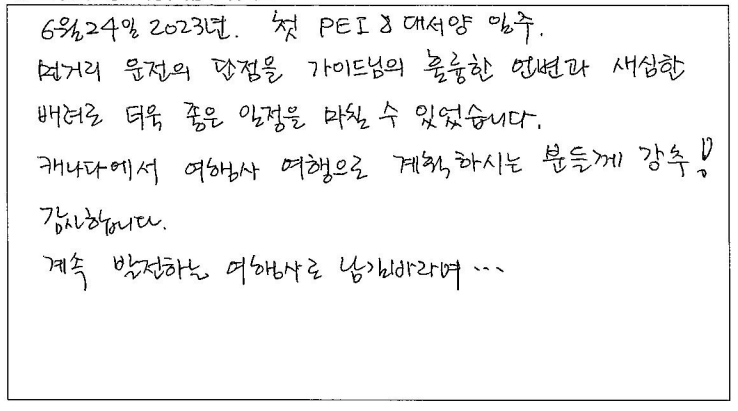 제목 | 2023년06월24일 출발 PEI&대서양일주 자필후기 | ||