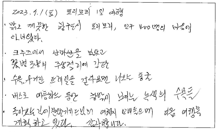 제목 | 2023년07월01일 출발 토버모리1일 자필후기 | ||