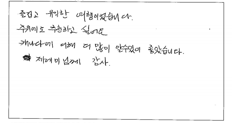 제목 | 2023년07월17일 출발 퀘벡 자필후기 | ||