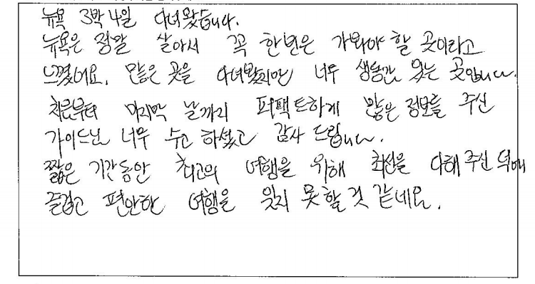 제목 | 2023년07월20일 출발 뉴욕만4일 자필후기 | ||