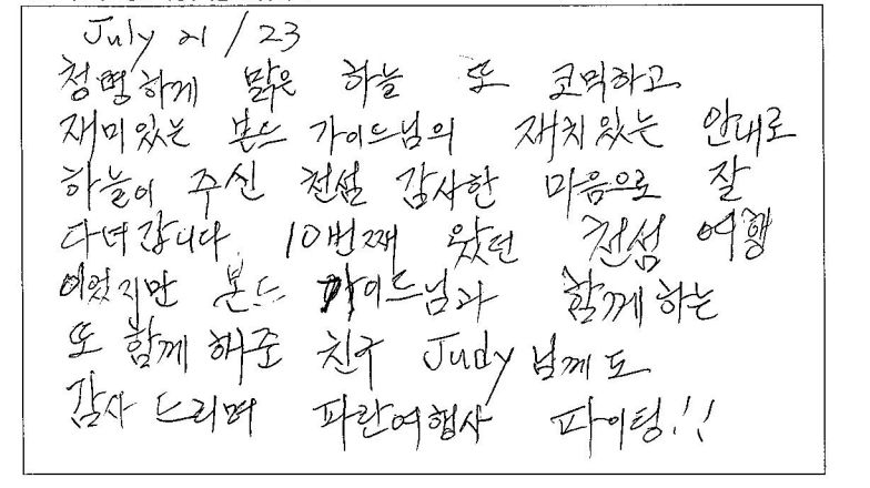 제목 | 2023년07월22일 출발 천섬+킹스턴1일 자필후기 | ||