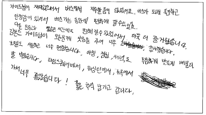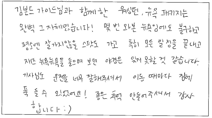 제목 | 2023년07월31일 출발 뉴욕+워싱턴3박4일 자필후기 | ||