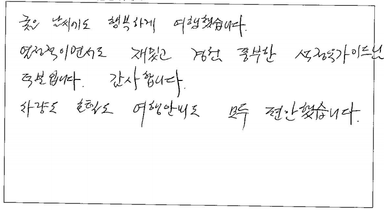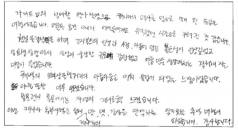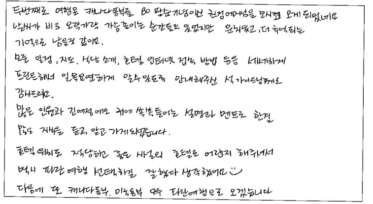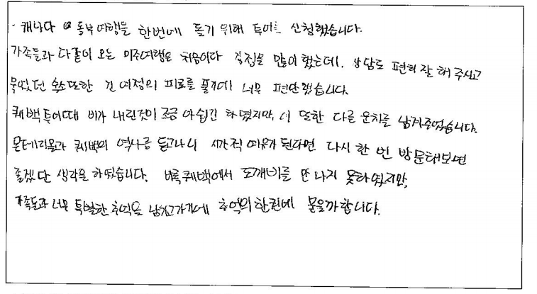 제목 | 2023년08월07일 출발 퀘벡 자필후기 | ||
