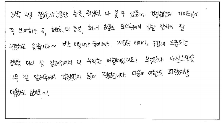 제목 | 2023년 08월 10일 출발 뉴욕+워싱턴3박4일 자필후기 | ||