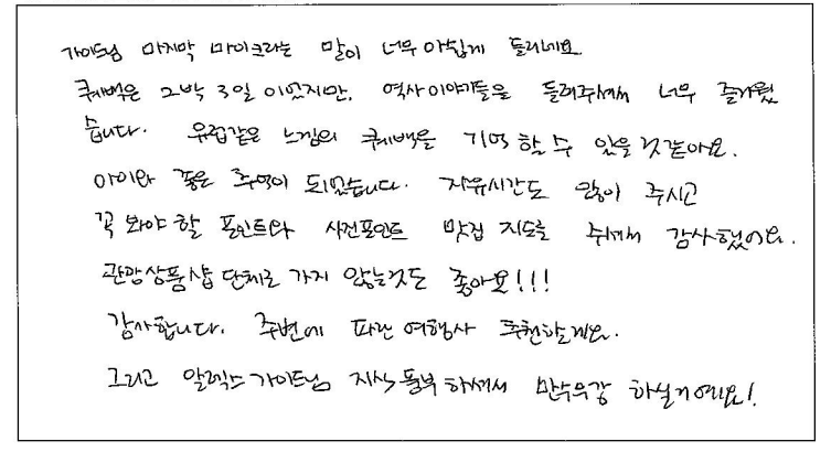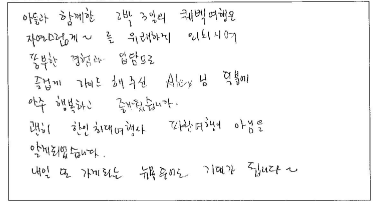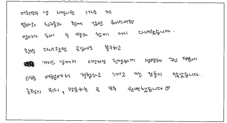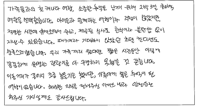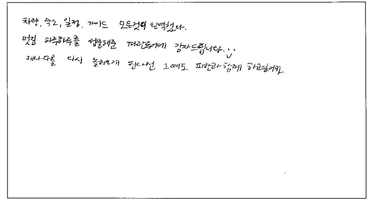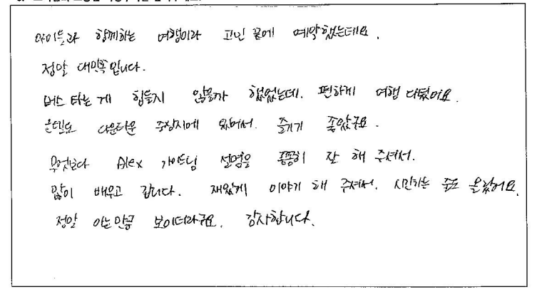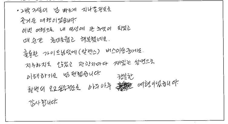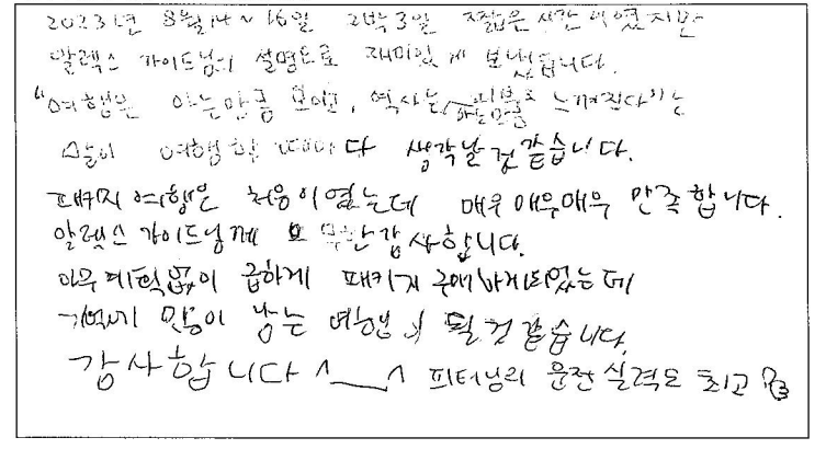 제목 | 2023년 08월 14일 출발 퀘벡 자필후기 | ||