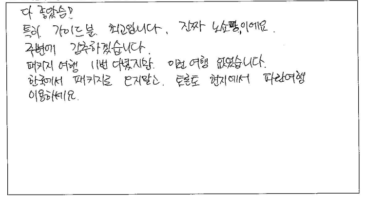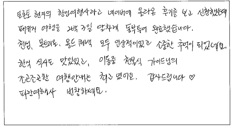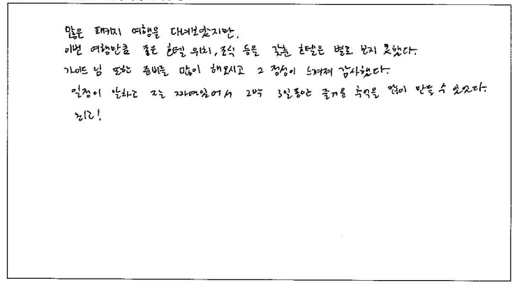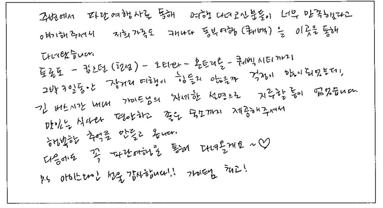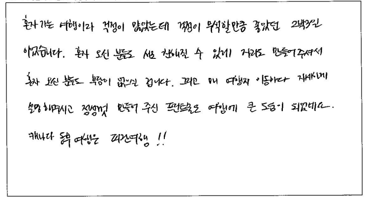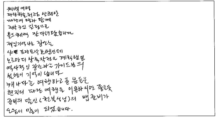 제목 | 2023년 08월 25일 출발 퀘벡 자필후기 | ||