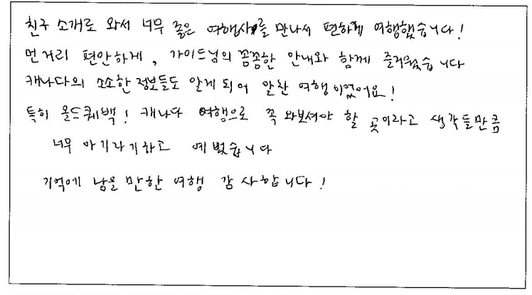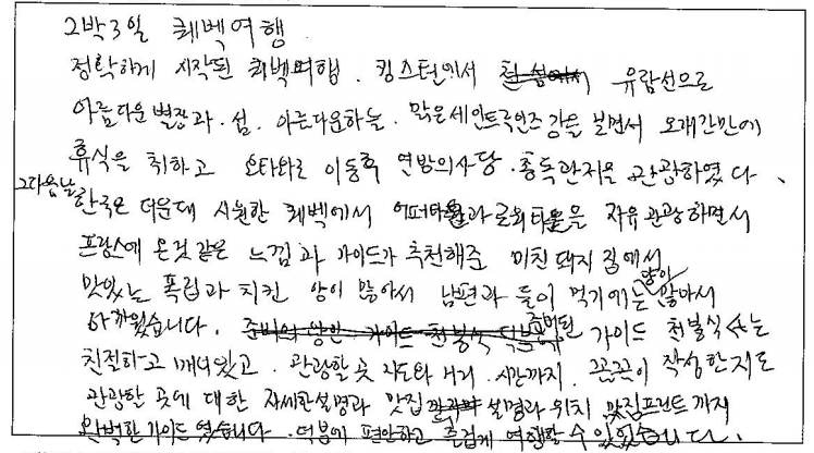 제목 | 2023년08월29일 출발 퀘벡 자필후기 | ||