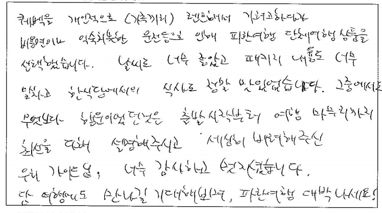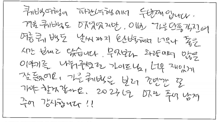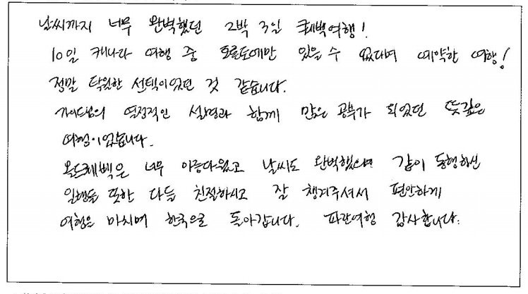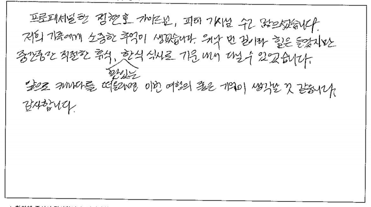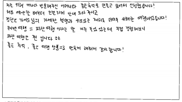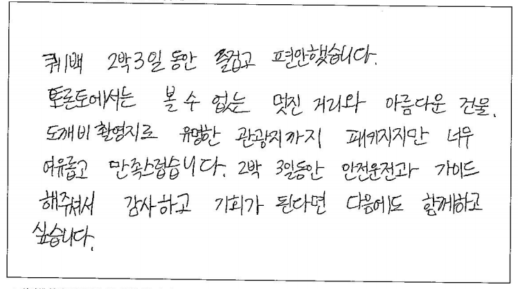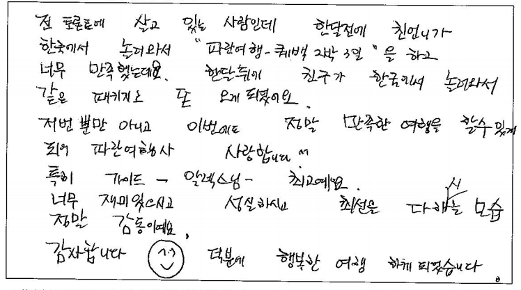 제목 | 2023년 09월 01일 출발 퀘벡 자필후기 | ||