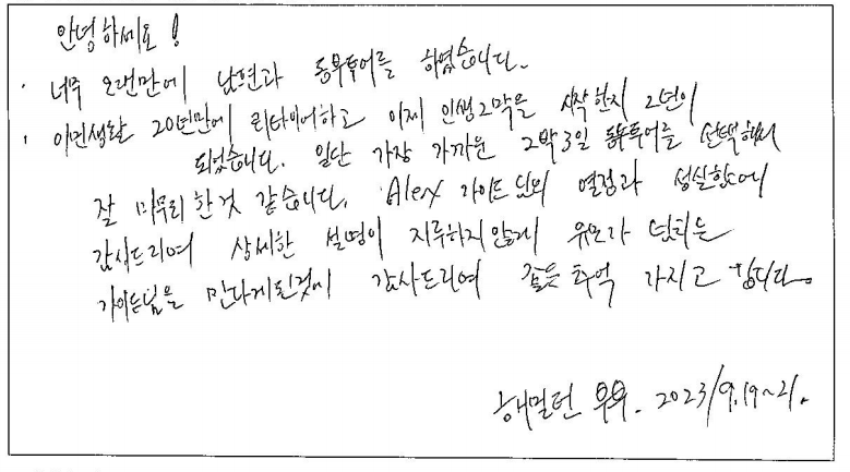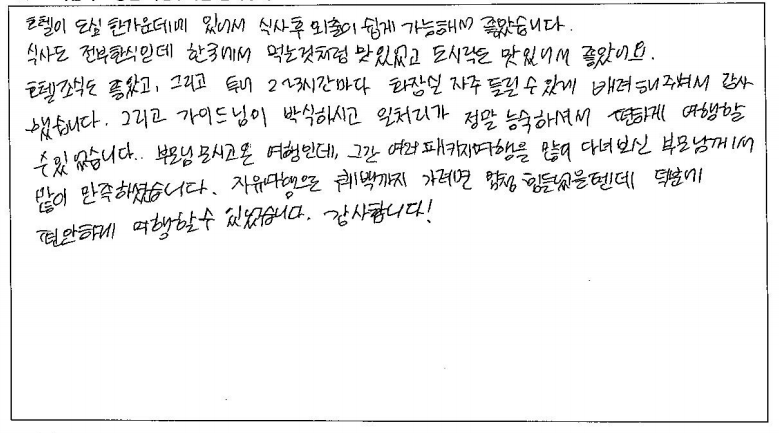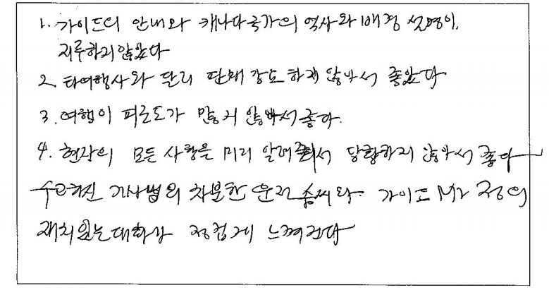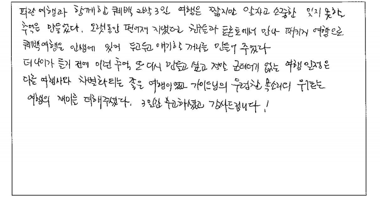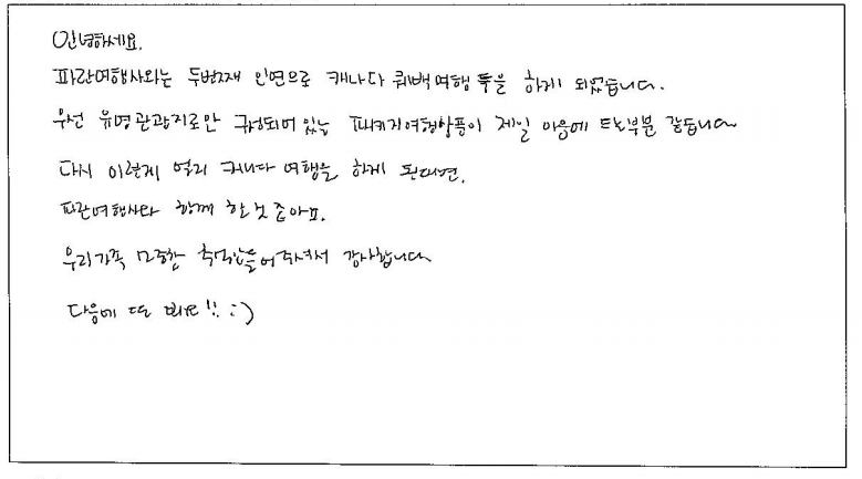 제목 | 2023년09월19일 출발 퀘벡+몽트랑블랑 자필후기(2-2호차) | ||