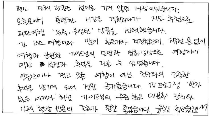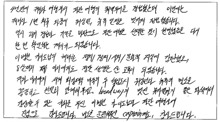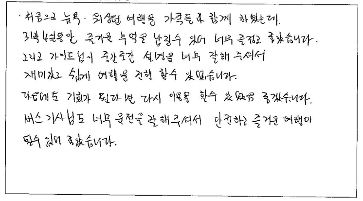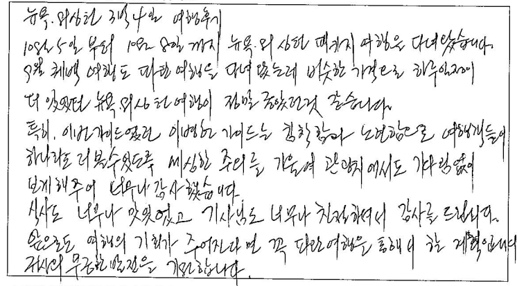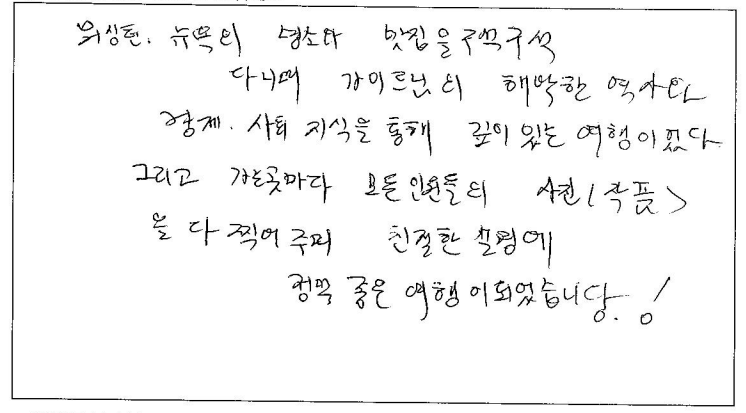 제목 | 2023년 10월05일 출발 뉴욕+워싱턴 자필후기 | ||