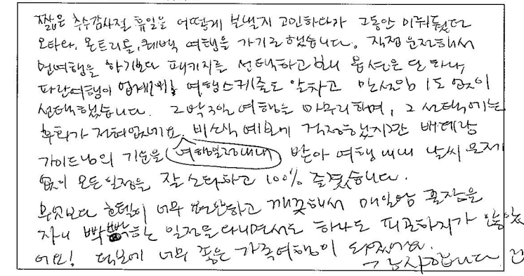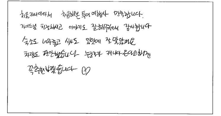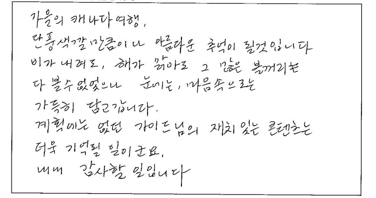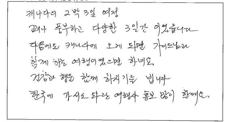 제목 | 2023년 10월 06일 출발 퀘벡+몽트랑블랑 자필후기(3-2호차) | ||