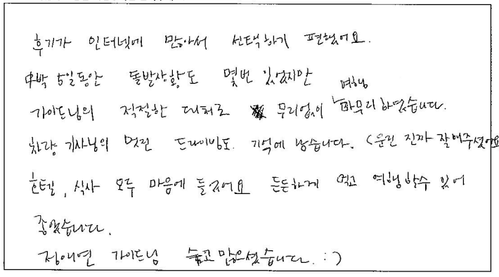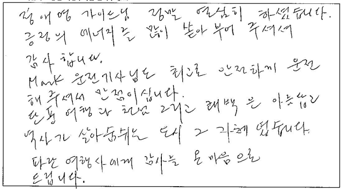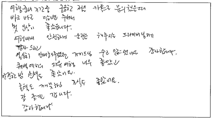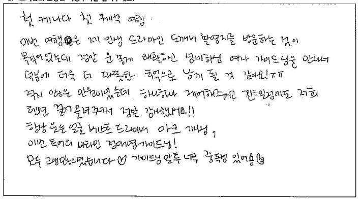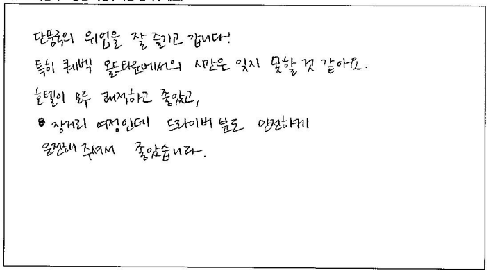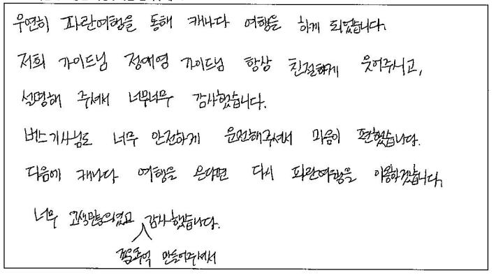 제목 | 2023년10월05일 출발 퀘벡+몽트랑블랑 자필후기(2-2호차) | ||