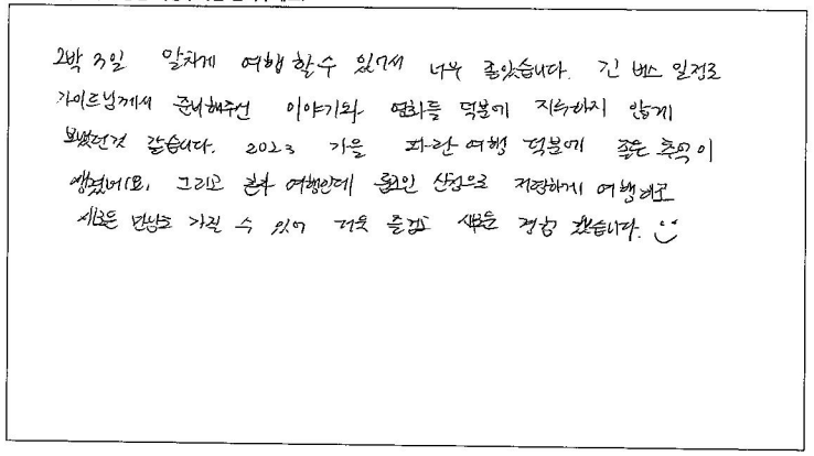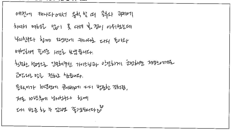 제목 | 2023년10월24일 출발 퀘벡 자필후기 | ||