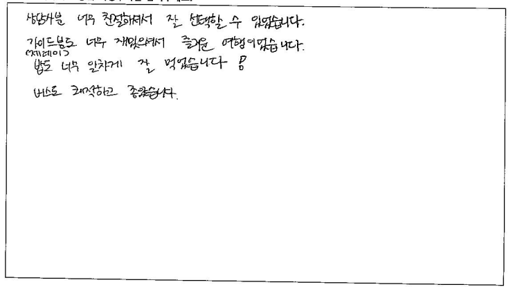 제목 | 2023년 11월 24일 출발 퀘벡 자필후기 | ||
