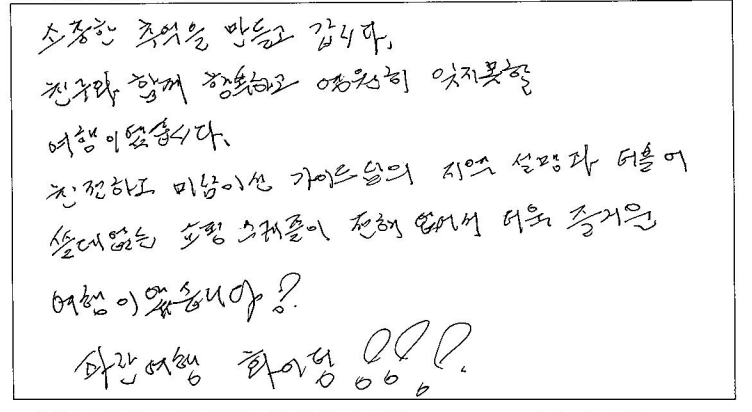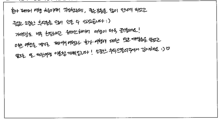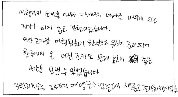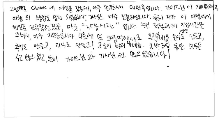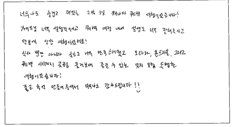 제목 | 2024년1월5일 출발 퀘벡 자필후기 | ||