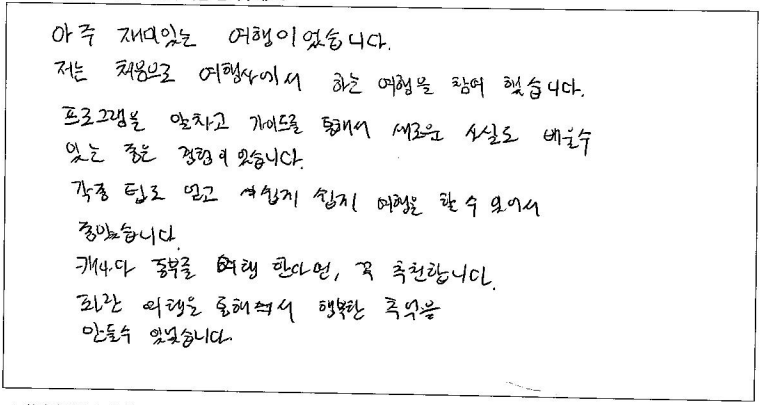 제목 | 2024년 05월 03일 출발 퀘벡 자필후기 | ||