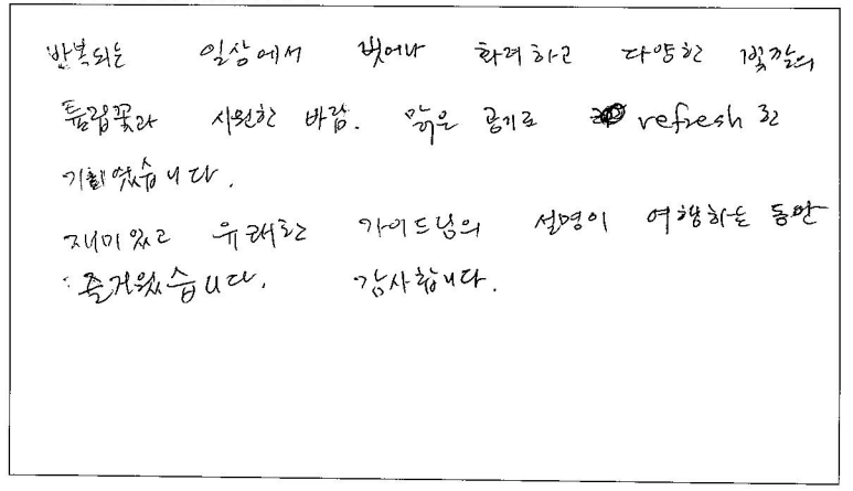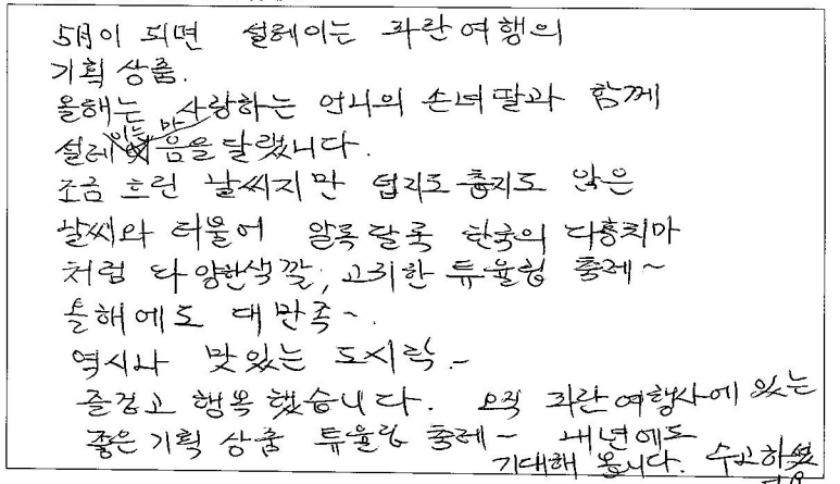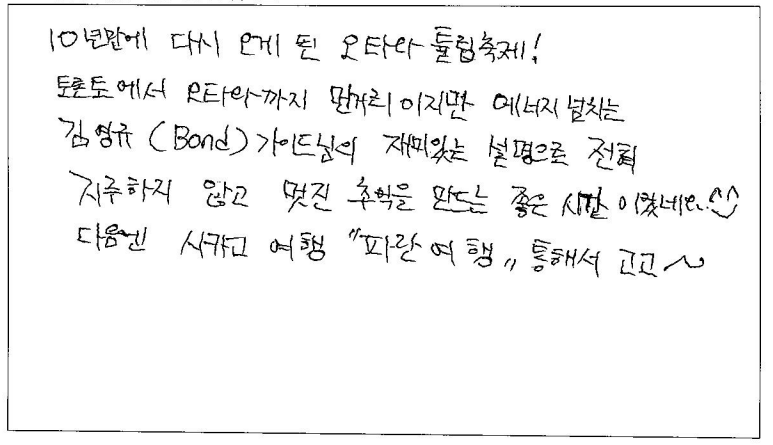 제목 | 2024년05월11일 출발 오타와튤립축제1일 자필후기 | ||