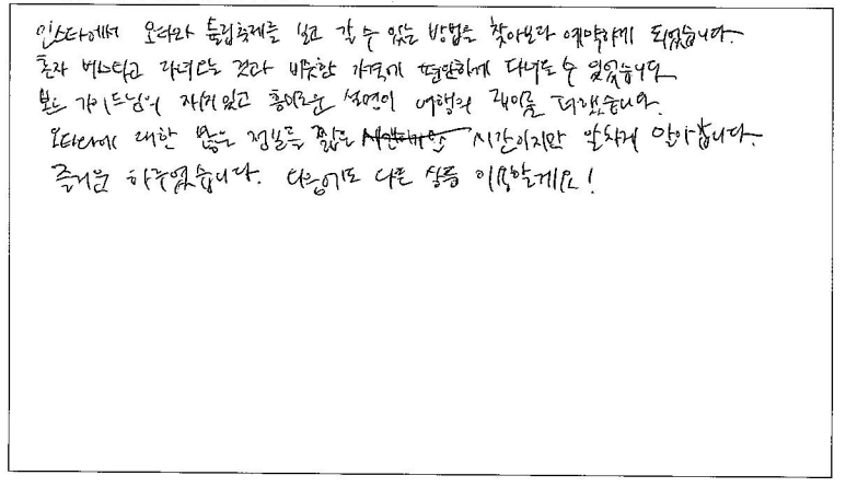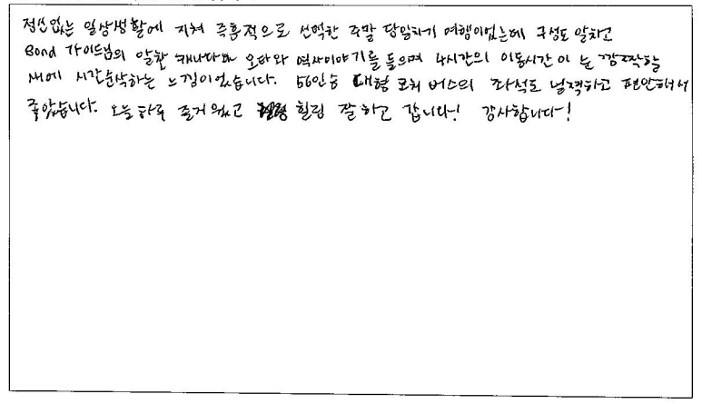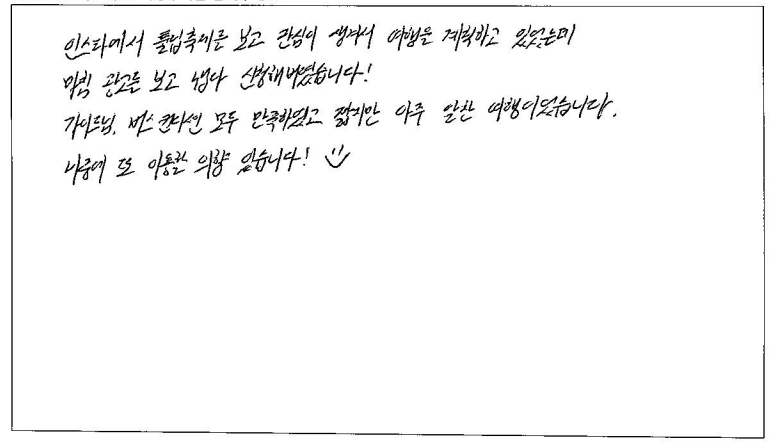 ![]() 처음으로 파란여행이랑 함께 여행해봤는데 너무 만족스럽고 즐거웠습니다! 하루만에 다녀오는 일정이라 사실 큰 기대를 안했는데, 자유시간도 여유롭게 주시고 알찬 일정이라 시간이 아깝지 않은 여행이었습니다. 준비해주신 도시락도 너무 맛있고 알찼으며 인생샷도 많이 찍었습니다 일년에 한 번 열리는 페스티벌, 인생샷 원하시면 추천드려요~ 그리고 가이드님도 너무 재밌게 설명해주시고, 날짜가 변덕스럽게 비가 오다 안오다 하는 날이었는데 가이드님께서 좋은 에너지를 주셔서 내내 즐거웠습니다. 감사합니다! :) ![]() 10년만에 다시 오게 된 오타와 튤립축제! 토론토에서 오타와까지 먼거리이지만 에너지 넘치는 가이드님의 재미있는 설명으로 전혀 지루하지 않고 멋진 추억을 만드는 좋은 시간이었네요 다음엔 시카고 여행 '파란여행' 통해서 고고~ ![]() 아들이 꽃 좋아하는 엄마, 아빠 다녀오시라며 신청했다고 할 때 장거리에 당일치기라 망설였다. 비 예보도 있었고...... 우려했던 것보다 훨씬 편안하고 즐거운 하루였다 담당 가이드님의 해박한 지식으로 캐나다 역사와 튤립축제에 관련된 재미있는 스토리 설명은 지루할 틈이 없었다. 편안하고 안전하게 운전해 주신 기사분과 가이드님께 감사하고 기획하신 파란여행의 좋은 상품들로 고객들께 사랑받고 더욱 번창하시길 기원합니다. ![]() 정신없는 일상생활에 지쳐 즉흥적으로 선택한 주말 당일치기 여행이었는데 구성도 알차고 가이드님의 알찬 캐나다, 오타와 역사이야기를 들으며 4시간의 이동시간이 눈 깜짝할 새에 시간 순삭하는 느낌이었습니다. 56인승 대형 코치 버스의 좌석도 널찍하고 편안해서 좋았습니다 오늘 하루 즐거웠고 힐링 잘하고 갑니다! 감사합니다! ![]() 인스타에서 오타와 튤립축제를 보고 갈 수 있는 방법을 찾아보다 예약하게 되었습니다 혼자 버스타고 다녀오는 것과 비슷한 가격에 편안하게 다녀올 수 있었습니다. 가이드님의 재치있고 흥미로운 설명이 여행의 재미를 더했습니다. 오타와에 대한 많은 정보를 짧은 시간이지만 알차게 알아갑니다. 즐거운 하루였습니다. 다음에도 다른 상품 이용할게요! ![]() 5월이 되면 설레이는 파란여행의 기획 상품 올해는 사랑하는 언니의 손녀딸과 함께 설레이는 마음을 달랬습니다. 조금 흐린 날씨지만 덥지도 춥지도 않은 날씨와 더불어 알록달록 한국의 다홍치마처럼 다양한 색깔, 고귀한 튤립축제~ 올해도 대만족~ 역시나 맛있는 도시락~ 즐겁고 행복했습니다. 오직 파란여행에 있는 좋은 기획 상품 튤립축제~ 내년에도 기대해 봅니다. 수고하셨습니다. ![]() 반복되는 일상에서 벗어나 화려하고 다양한 빛깔을 튤립꽃과 시원한 바람, 맑은 공기로 리프레쉬한 기회였습니다. 재미있고 유쾌한 가이드님의 설명이 여행하는 동안 즐거웠습니다. 감사합니다. ![]() 가이드님의 열정적인 에너지가 너무 좋았습니다. 짧고 굴게 시간낭비 없이 투어를 하고 싶으시면 '파란여행' 강추합니다! 너무 즐거운 추억 많이 만들고 갑니다~ 캐나다에서 특별한 경험을 하고 싶으신분들께 꼭 추천드립니다! ![]() 인스타에서 튤립축제를 보고 관심이 생겨서 여행을 계획하고 있었는데, 마침 광고를 보고 냅다 신청해버렸습니다! 가이드님, 버스 컨디션 모두 만족하였고 짧지만 아주 알찬 여행이었습니다. 나중에 또 이용할 의향 있습니다! :) ![]() 토론토에 살면서 오타와 튤립축제는 한번도 방문해 보지 못하여서 이번 오타와 튤립축제 1일 투어에 참여하게 되었습니다. 날씨가 안좋다는 예보에 걱정을 하였지만 가이드님께서 새벽까지 기도해 주신 덕분에 비가 많이 오지는 않았습니다. 다행히 ^^ 개인적으로 여행오면 주차나 이런 것도 고민 많이 해야하는데 편하게 버스타고 와서 많이 신경쓰지 않고 관광에 집중할 수 있어서 좋았고요 이동할 때 가이드님께서 알려주신 다양한 이야기도 많이 유익했습니다. 감사합니다!! 기사님께서 운전도 편하게 해주셔서 이동할 때 푹 잠도 잘 잤구요. 차량도 깨끗해서 쾌적하고 좋았습니다. 여행에 집중할 수 있는 '파란여행' 추천드려요! ![]() 6년을 살면서 오타와 튤립축제를 처음와봤어요 차가 없어서 오기 힘들었는데 '파란여행' 1Day 투어가 있어서 너무 좋았어요 점심 도시락도 매우 만족했고 좋은 추억을 쌓을 수 있어서 좋았습니다. |