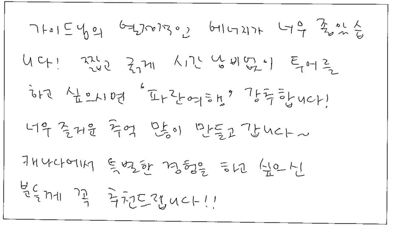 캐나다동부출발 여행상품의 시장점유율 96.89%가 입증하는 캐나다 최대규모 한인여행사 '파란여행'