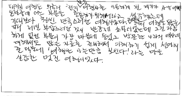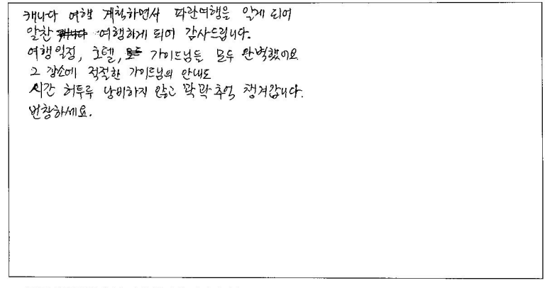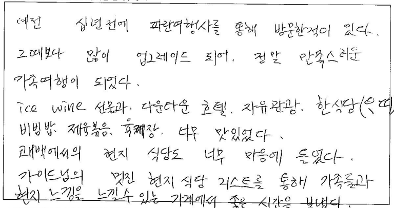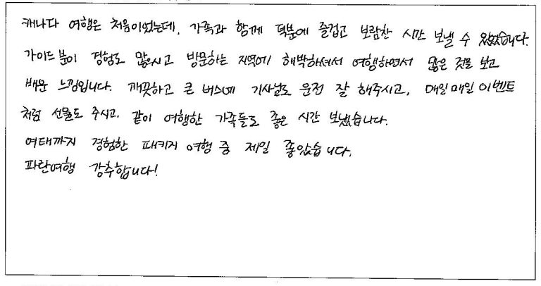 제목 | 2024년 05월 14일 출발 퀘벡 자필후기 | ||