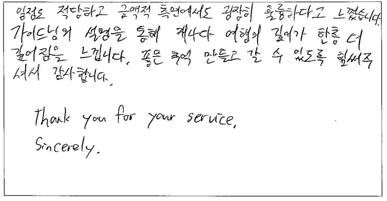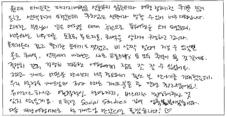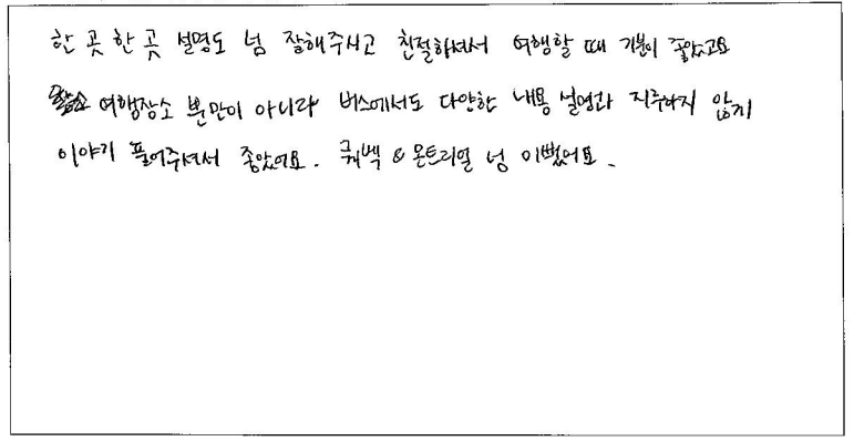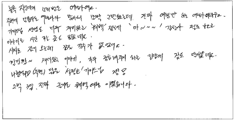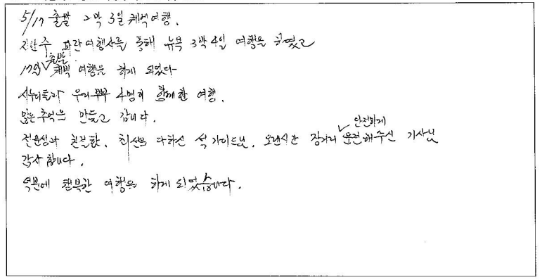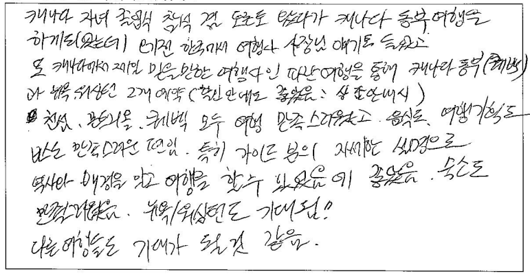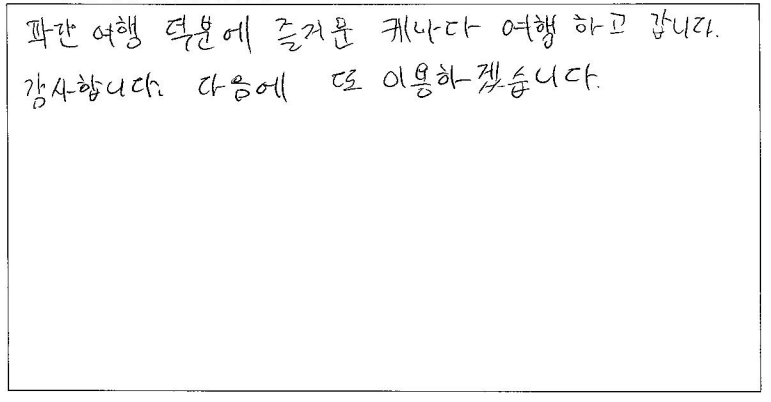 제목 | 2024년 05월 17일 출발 퀘벡 자필후기 | ||