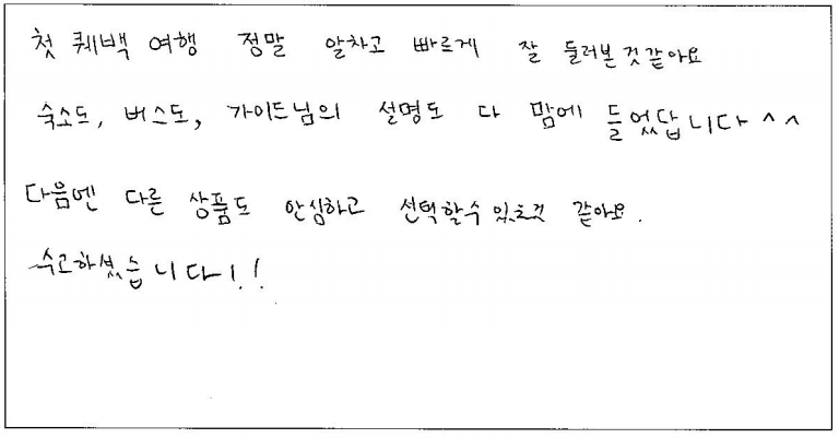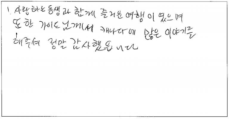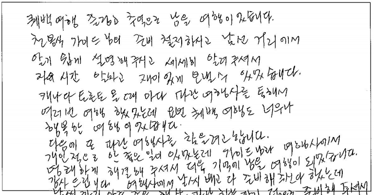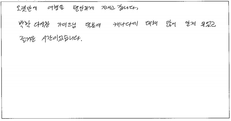 제목 | 2024년 05월 27일 출발 퀘벡 자필후기 | ||