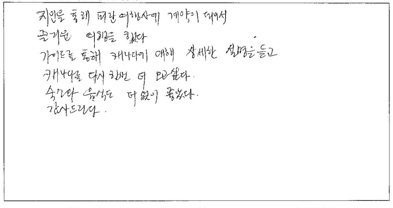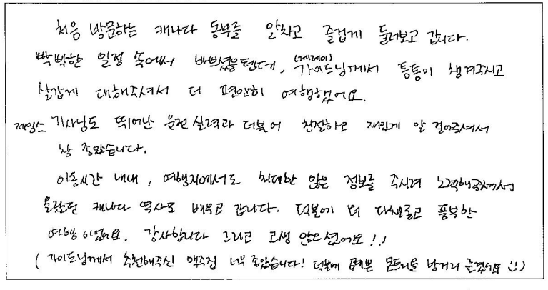 제목 | 2024년 05월 31일 출발 퀘벡 자필후기 | ||