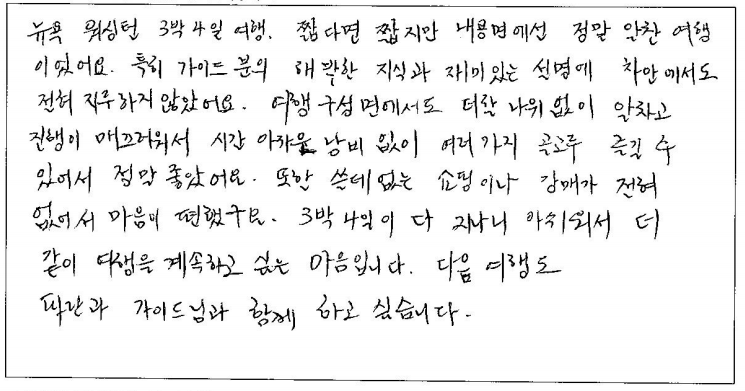 제목 | 2024년06월06일 출발 뉴욕+워싱턴3박4일 자필후기 | ||