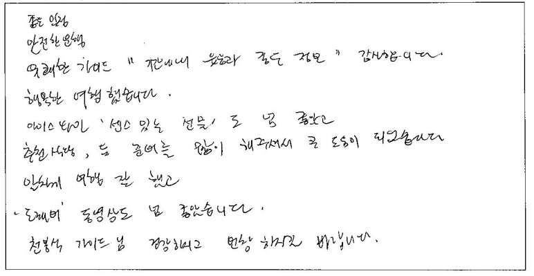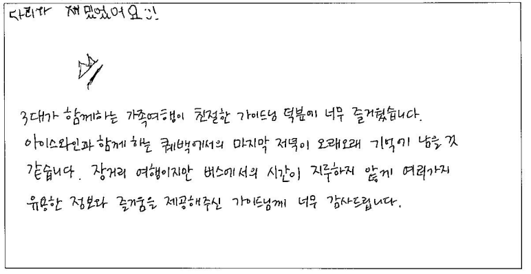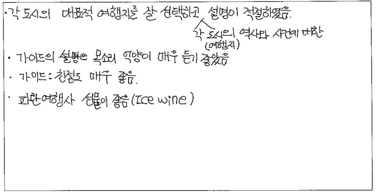 제목 | 2024년 06월 25일 출발 퀘벡 자필후기 | ||