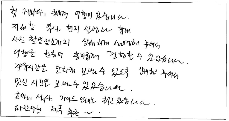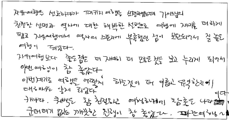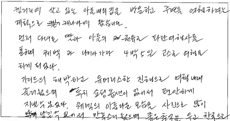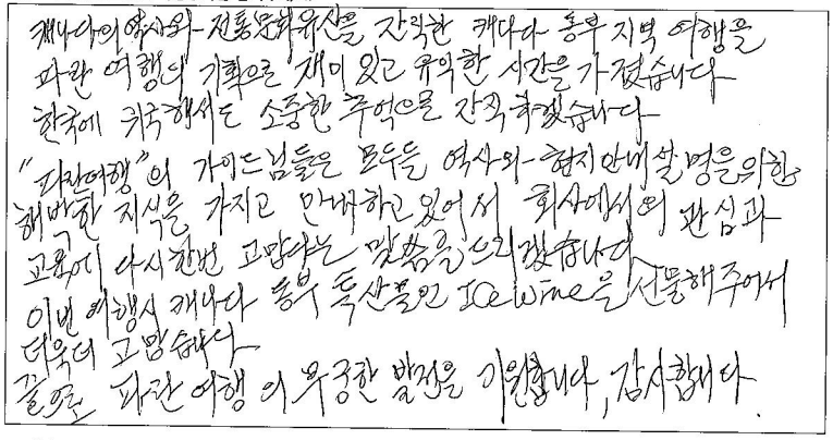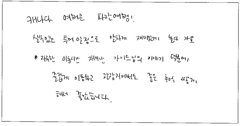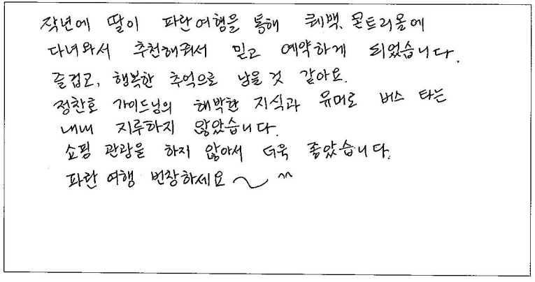 제목 | 2024년 07월 01일 출발 퀘벡 자필후기 | ||
