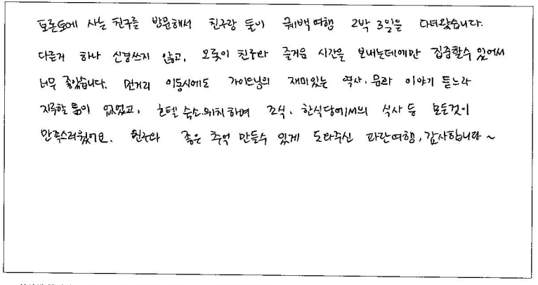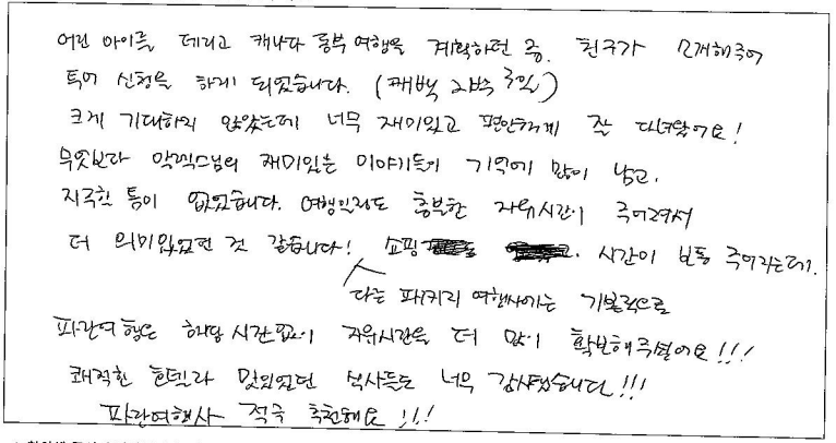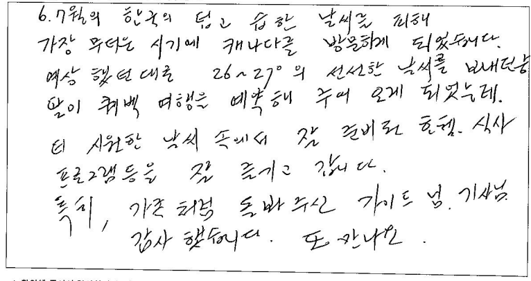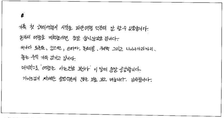 제목 | 2024년 07월 22일 출발 퀘벡 자필후기 | ||